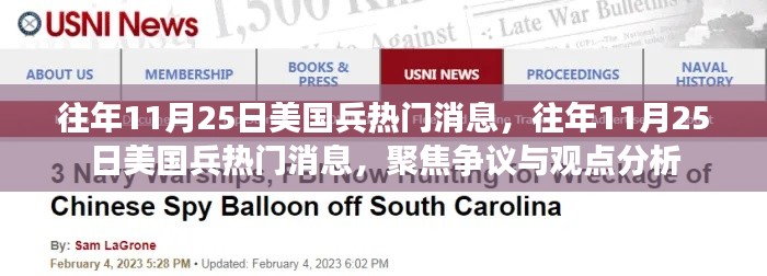 在每年的11月25日,美国军事领域的消息总是备受全球关注,这一天,无论是关于美国兵的新动态、军事演习的进展还是其他相关事件,都会成为公众关注的焦点,本文将围绕往年这一天美国兵热门消息展开论述,旨在探讨其中的争议与观点,并阐述个人的立场和理由。